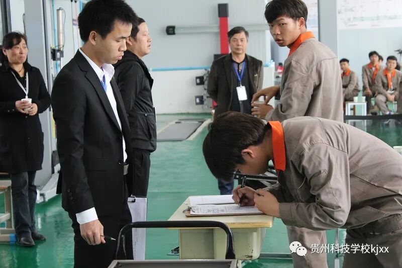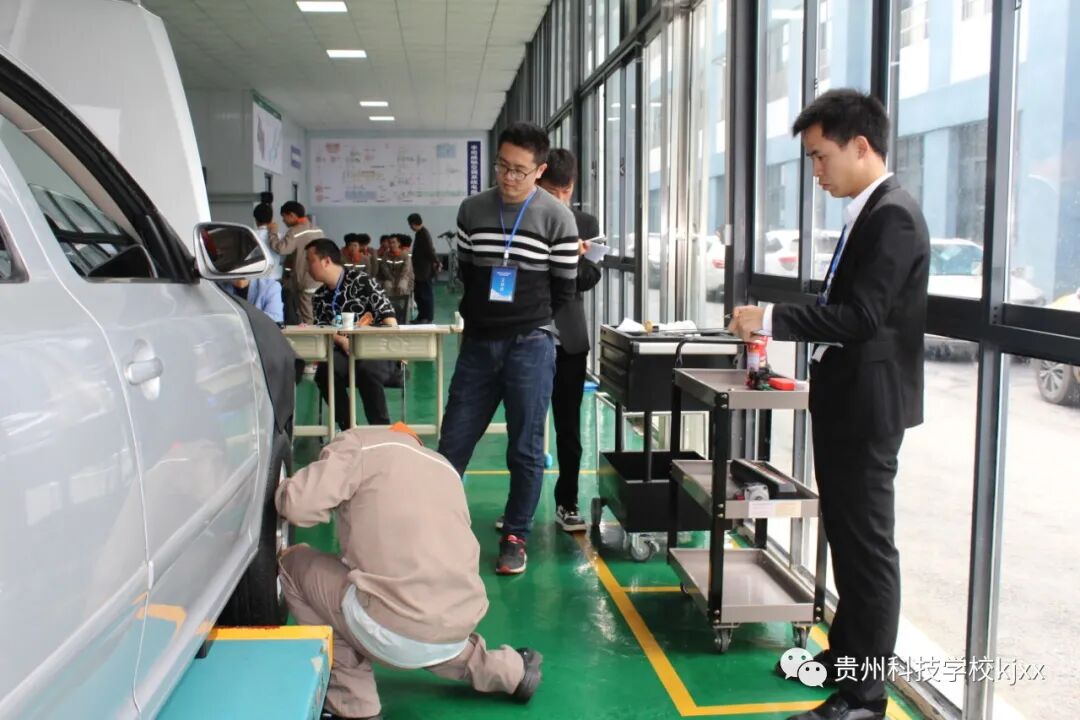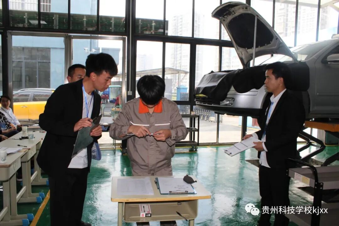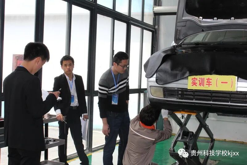 专业技能监测科目:汽车与维修专业;学校王校长和孟主任亲临现场观摩,每个学生都把自己的专业技能展现出来,在众多考官的监测下临危不惧完成自己的专业技能考核。